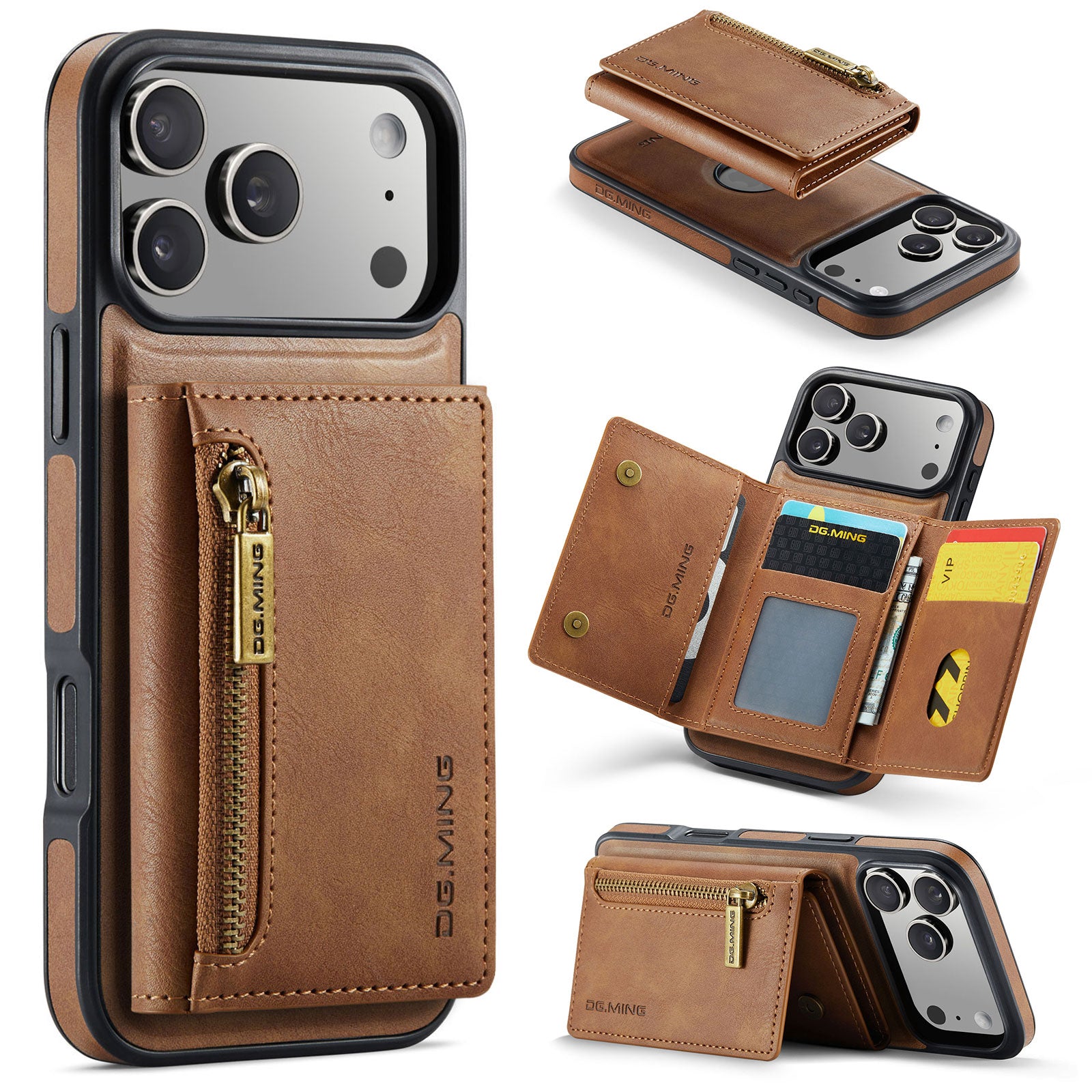 New 2-IN-1 RFID Blocking Zipper Wallet Card Holder Leather Phone Case for iPhone Air/17/17 Pro/17 Pro Max