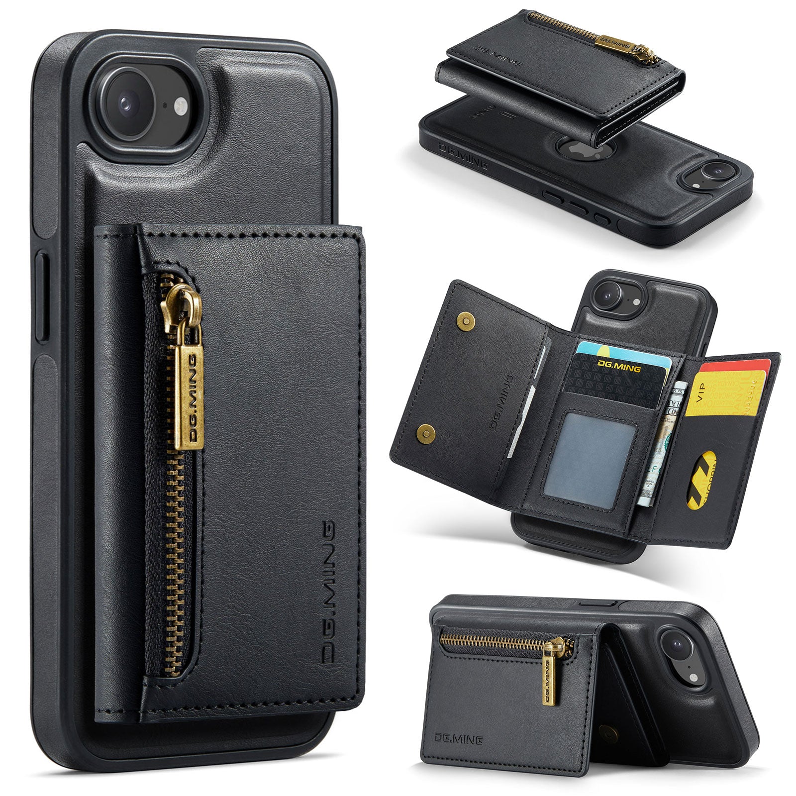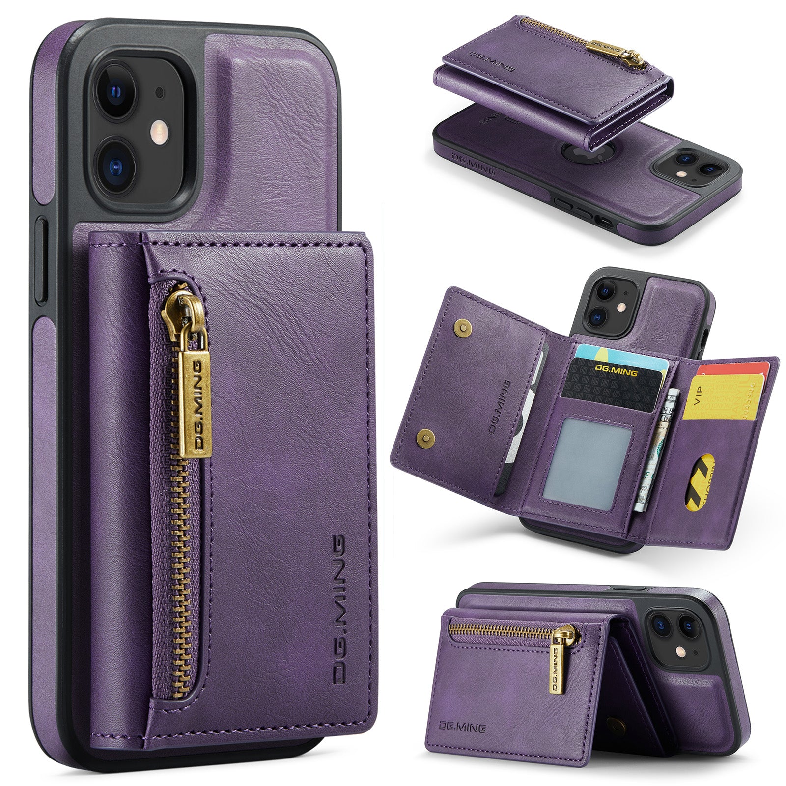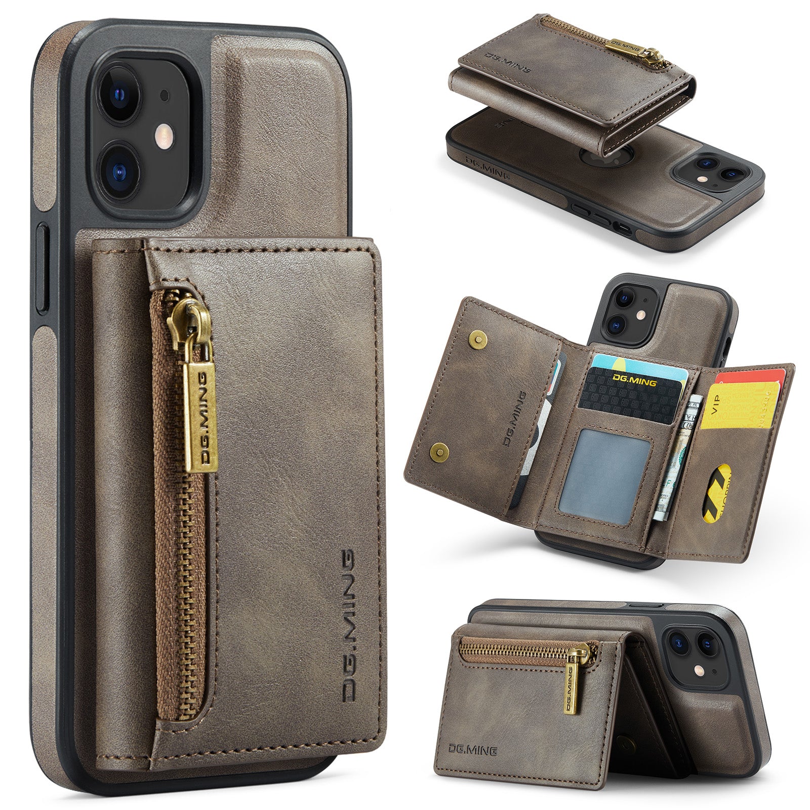 New 2-IN-1 RFID Blocking Zipper Wallet Card Holder Leather Phone Case for iPhone