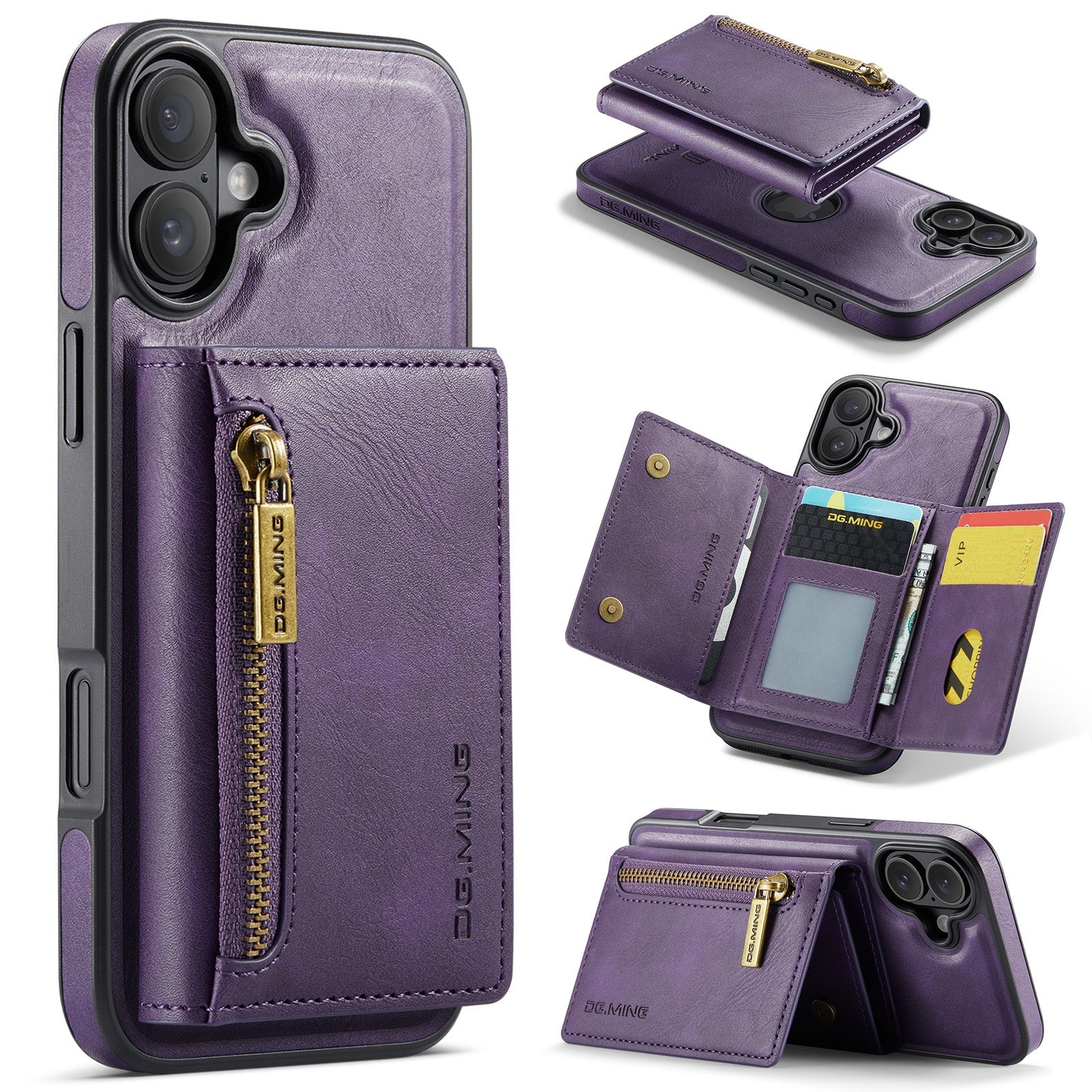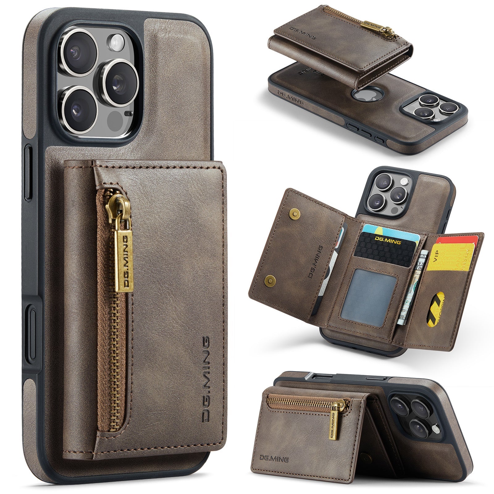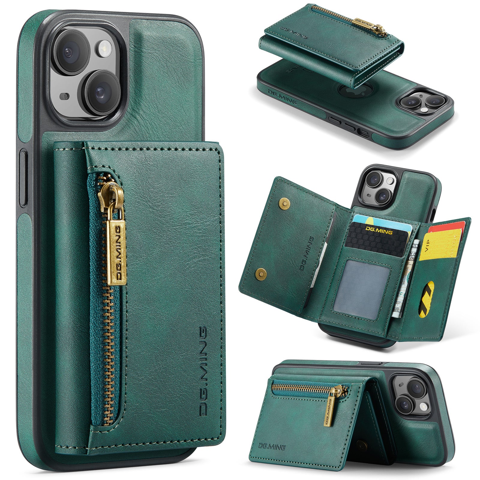 New 2-IN-1 RFID Blocking Zipper Wallet Card Holder Leather Phone Case for iPhone