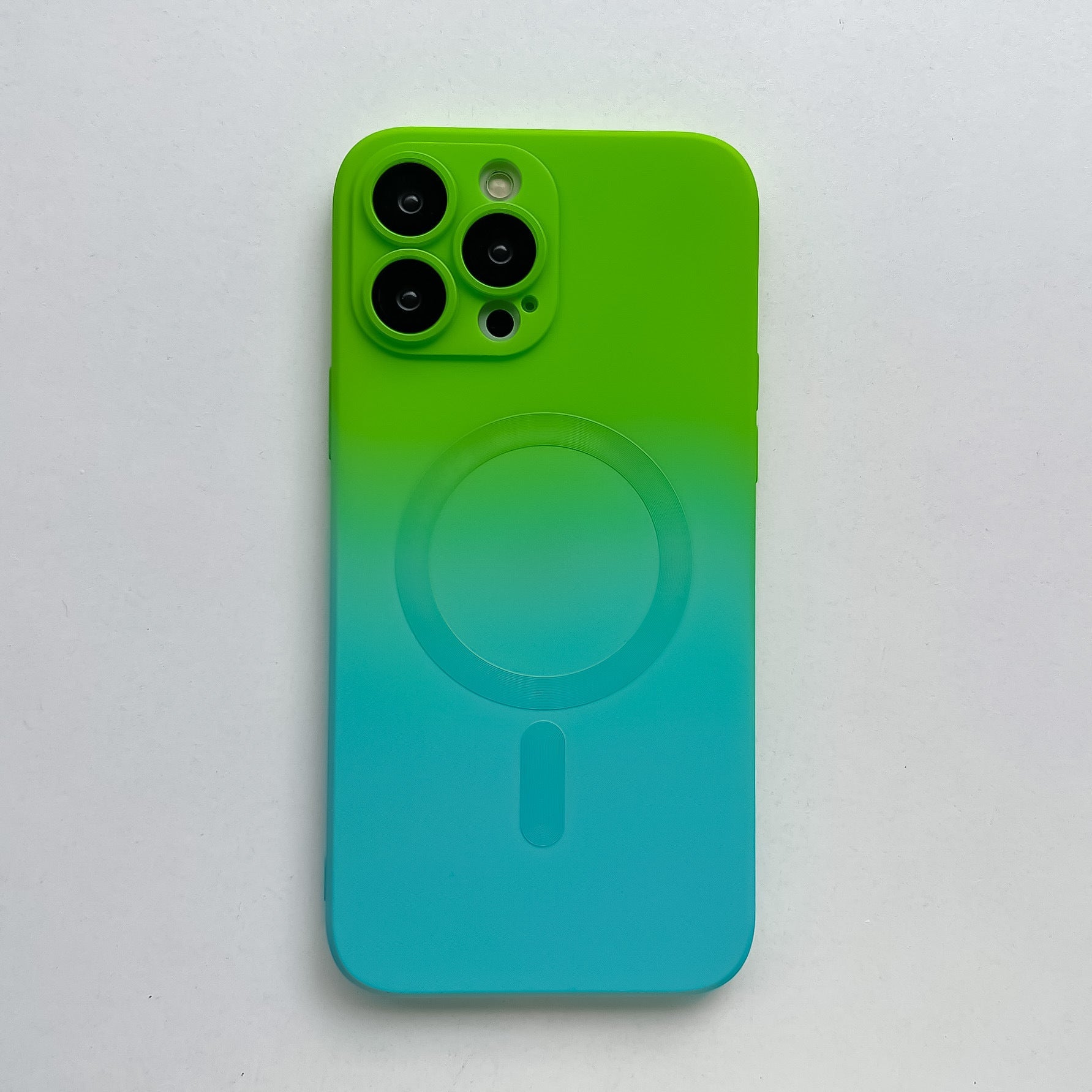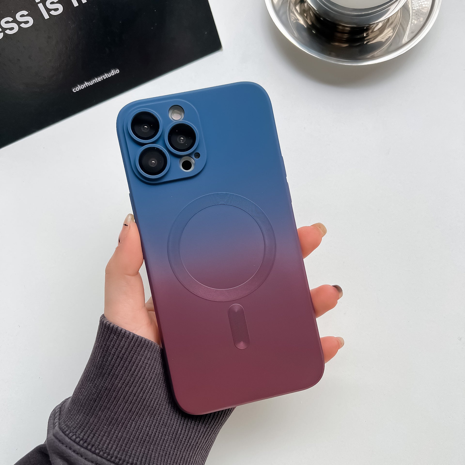 New Liquid Silicone Two-Color Gradient Magnetic with Lens Protector Case for iPhone 14/13/12/Pro/Pro Max