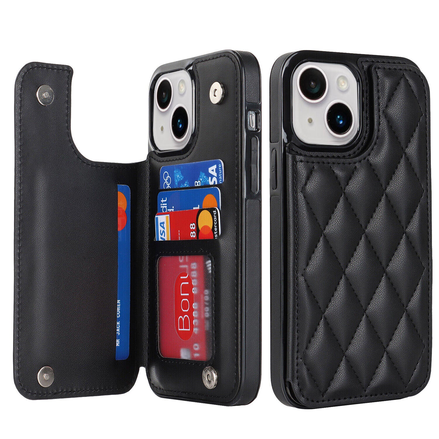 New RFID Blocking PU Leather Card Holder Phone Case for iPhone
