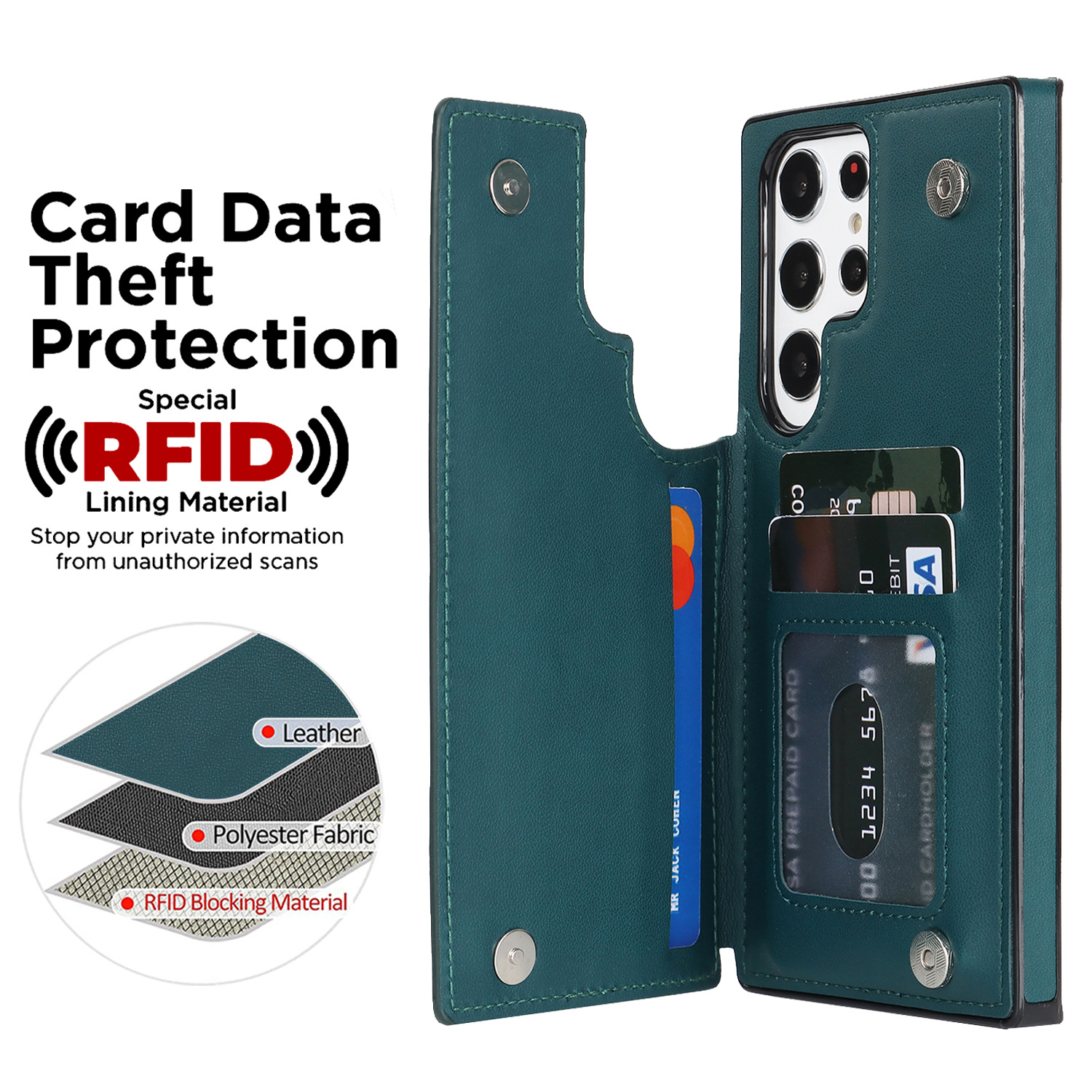 New RFID Blocking PU Leather Card Holder Phone Case for Samsung