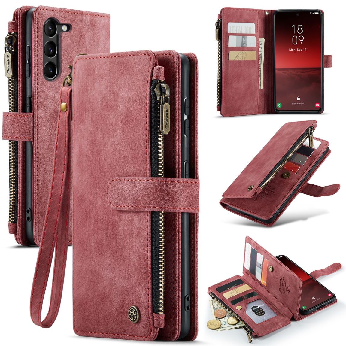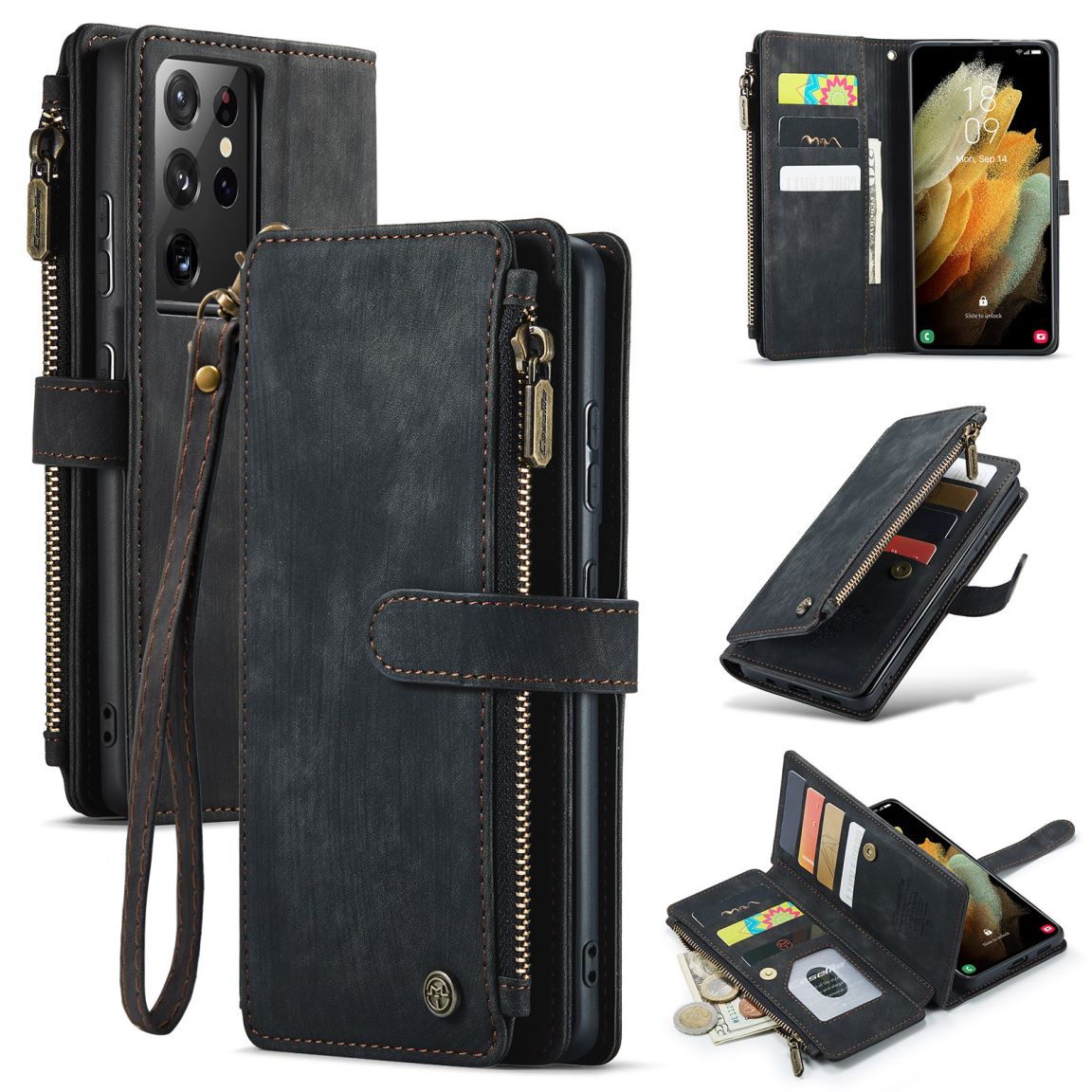 New Zipper Wallet Leather Wireless Charging Phone Case for Samsung